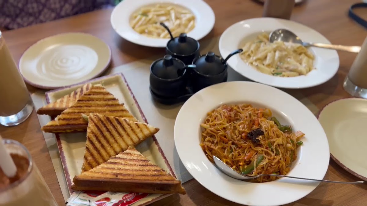 The café is best known for its drinks, notably the Ferrero Rocher Shake and Ice Tea, which are popular with regulars looking for a sweet, refreshing break. Other beverage options like their thick, creamy café frappe also get good mentions from visitors. The menu balances quick bites and small pizzas — items like double cheese corn or tandoori paneer pizzas offer simple, satisfying snack choices if you’re not here for an elaborate meal. Light eats such as mini samosas, spring rolls, and pizza puffs fit well with the casual atmosphere, making it a convenient spot for catching up over food without fuss.